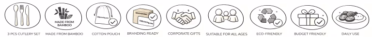 Bamboo Cutlery Set Printing is an eco-friendly and practical solution for sustainable dining and promotional branding. This 3-piece set includes a spoon, fork, and knife, all made from natural bamboo, offering a lightweight, durable, and reusable alternative to plastic cutlery.