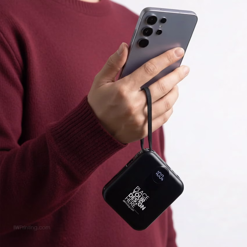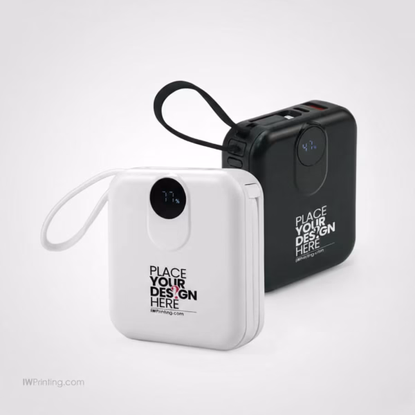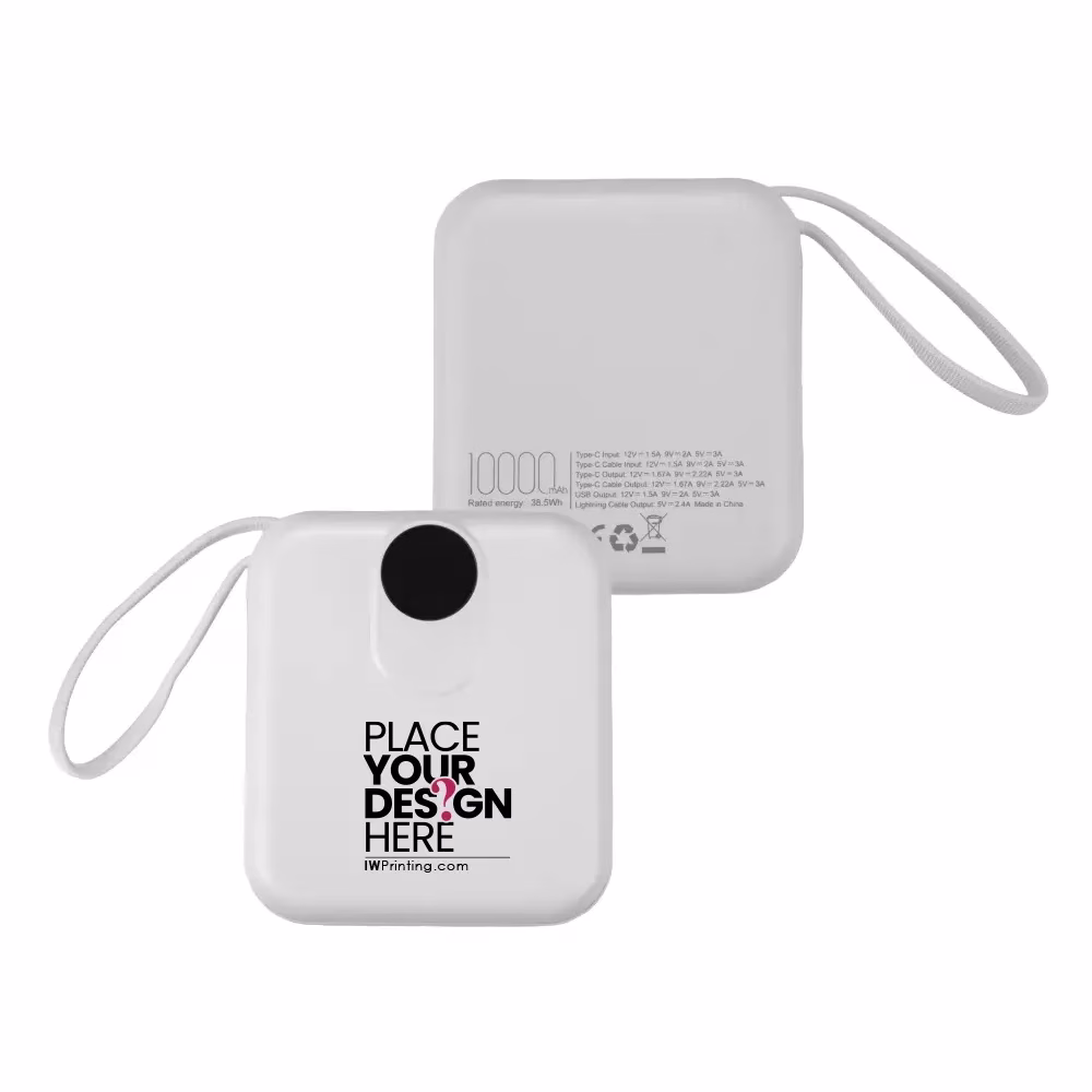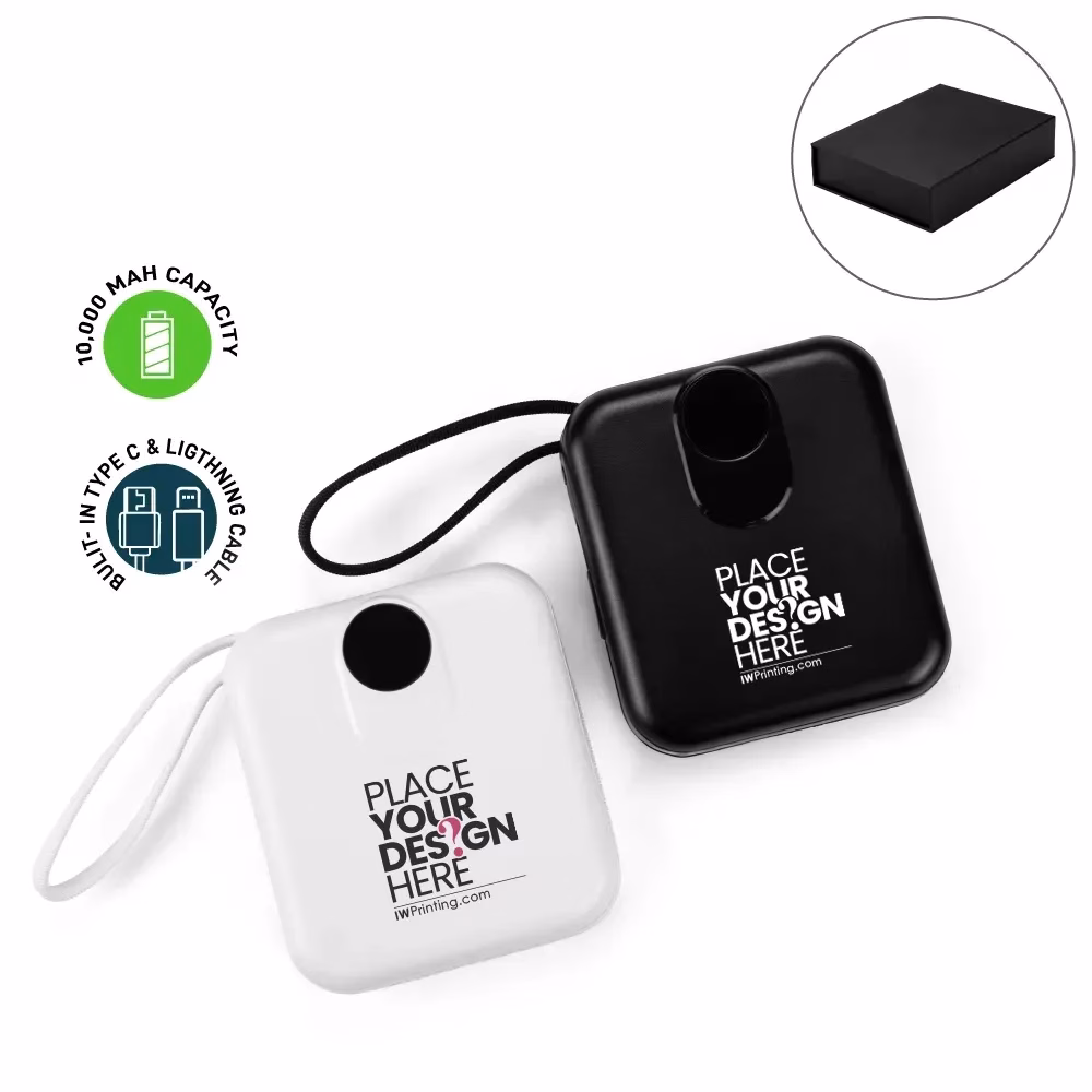Available in classic black and white, this powerbank comes packed in a premium black hardboard magnetic closure box for a high-end presentation. Its portable size and versatile performance make it ideal for corporate gifts, executive giveaways, events, tech campaigns, employee onboarding kits, and travel-friendly daily use from IWPrinting.com.