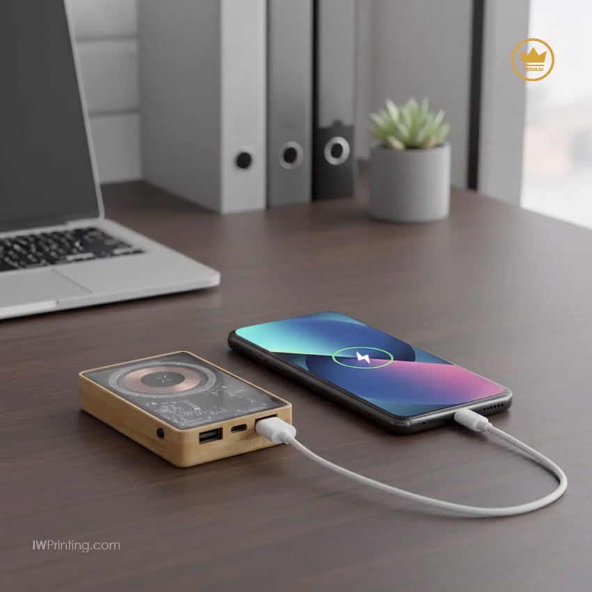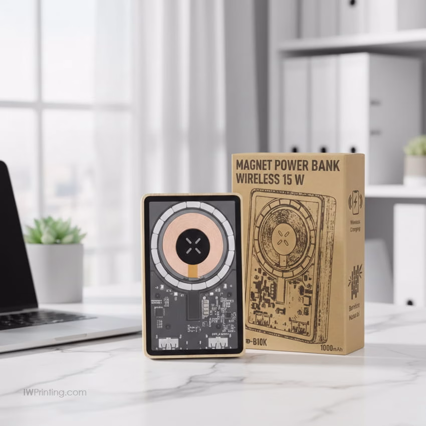 With a powerful 10,000 mAh capacity, it provides 2–3 full charges for most smartphones, making it ideal for travel and daily use. Compact, lightweight, and easy to carry, this powerbank includes built-in safety features such as overcharge, short-circuit, and overheat protection. A perfect eco-conscious corporate gift or promotional product with premium branding from IWPrinting.com.
