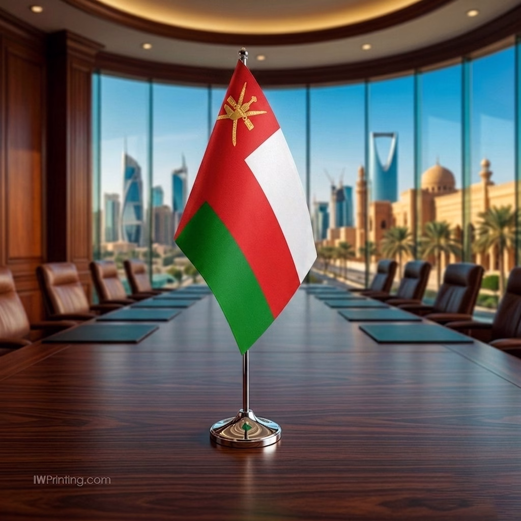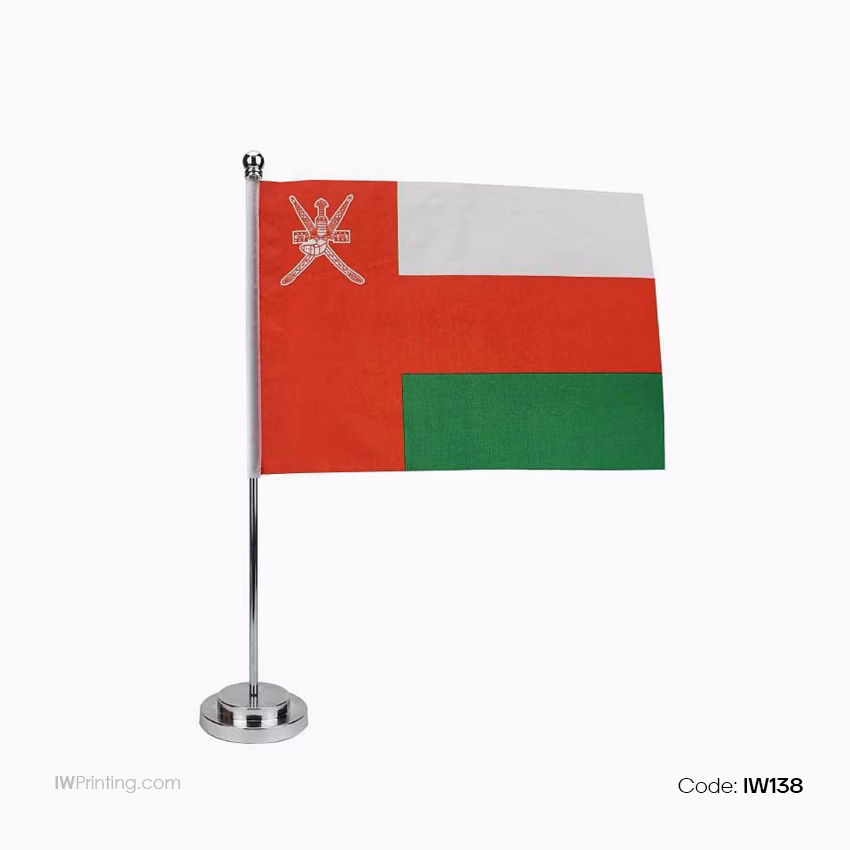 Widely used in offices and events across Oman, this table flag is available from IWPrinting a perfect combination of quality, elegance, and national representation.