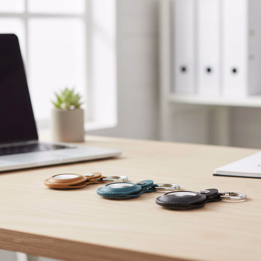 At IWPrinting.com, the PU keychain with tracker tag pocket is available with custom branding options, making it an ideal promotional product. Whether you call it a PU tracker key holder, AirTag keychain case, or smart tag key organizer, this PU Keychain with Tracker Tag Pocket combines functionality, modern design, and brand visibility in one premium accessory.