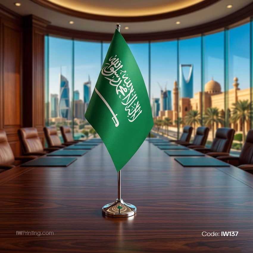 Widely used in corporate and official environments across Saudi Arabia, this table flag is a great choice for branding, gifting, and patriotic displays. Available from IWPrinting, it delivers quality, elegance, and national pride in one product.