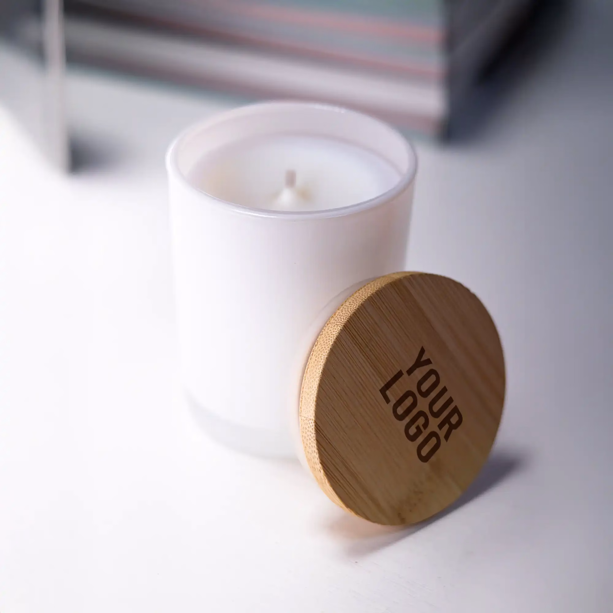 Scented Candles Gifts in Dubai are a sophisticated and thoughtful choice for premium corporate gifting and special occasions. This frosted glass scented candle comes with a natural bamboo lid, offering a modern and elegant look that complements any space.